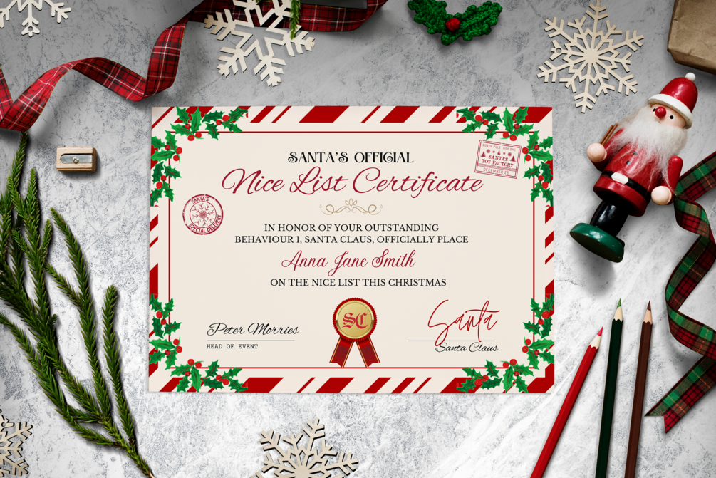 Bring the magic of Christmas into your home with our beautifully designed printable pack. This charming set includes customizable Nice List Certificates and personalized Santa Letters, perfect for delighting children during the festive season.