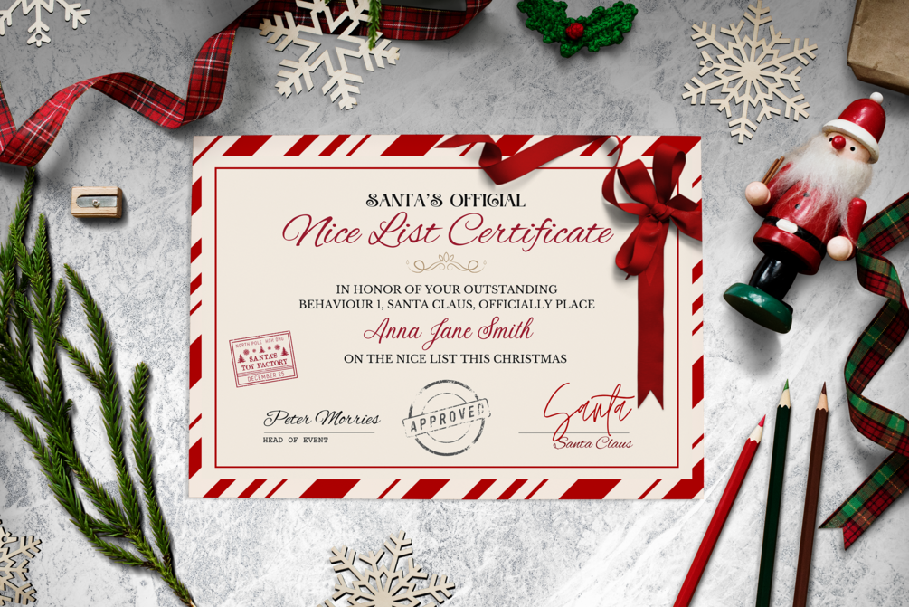 Bring the magic of Christmas into your home with our beautifully designed printable pack. This charming set includes customizable Nice List Certificates and personalized Santa Letters, perfect for delighting children during the festive season.