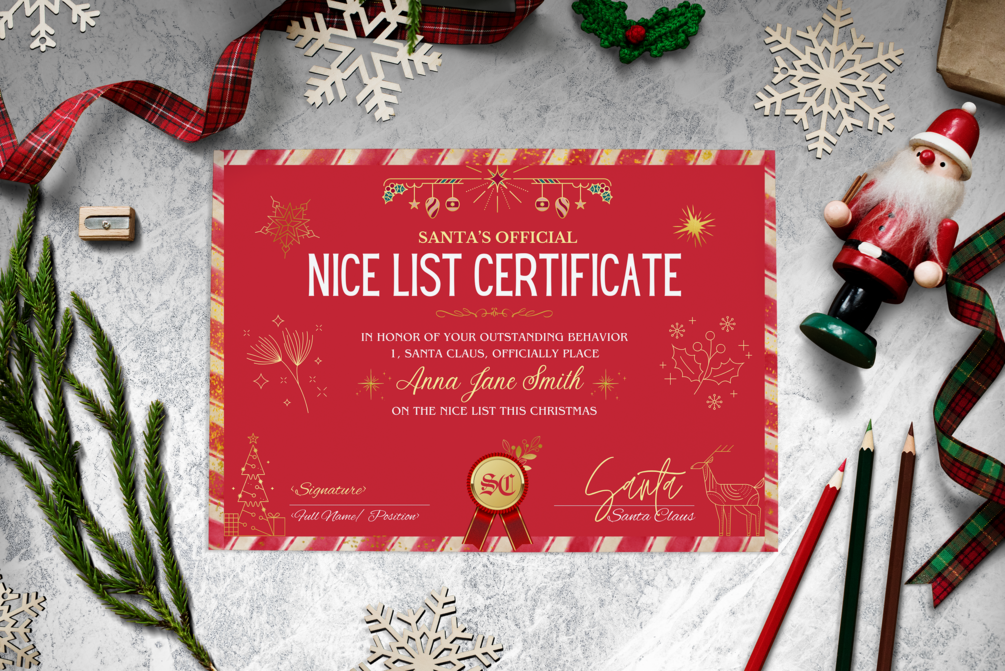- 1 Nice List Certificate (11 x 8.5 inches) x 1 Santa Letter (US Letter size) I Print-ready PDFs.